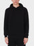 Felpa manica lunga e cappuccio basica in misto cotone. Bandierina logo applicata lateralmente. Tasca marsupio sul fronte e coulisse regolabile. Maxi stampa logo su braccio sinistro. Fondo dritto con polsini e finitura a coste