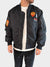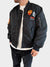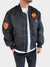 Bomber foderato in puro cotone con patch applicate e maxi coulisse. Maniche lunghe con tasca applicata su lato sinistro. Chiusura centrale con zip metallica. Maxi tasche anteriori con chiusura a bottoni. Fondo dritto. Scollo e polsini elasticizzati con finitura a coste a contrasto. Tessuto waterproof.