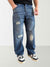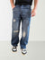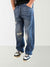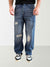Denim in puro cotone vestibilità Arc con rotture, rammendi ed abrasioni. Asole e cuciture a contrasto. Effetto biker sul fronte. Chiusura centrale con bottoni e zip nascosta. Tasche taglio americano sul fronte e con dettaglio cucitura sui fianchi. Orlo effetto used. Cinturino e dettaglio distressed fondo gamba destra sul retro. Salpa logo applicata in vita