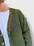 Cardigan jacquard over fit con scollo a V. Dettaglio decorazione a filo intrecciato multicolor sullo scollo. Abbottonatura centrale. Manica lunga a spalla scesa. Maxi disegno jacquard sul retro. Fondo dritto.