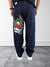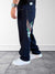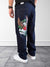 Denim in puro cotone vestibilità Japan modello Bernabeu lavaggio scuro con maxi stampa nel retro. Cuciture a contrasto. Tasche americane sul fronte con taschino. Bandierina logo applicata sul retro. Chiusura centrale con bottoni e zip nascosta. Patch logo applicata in vita
