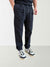 Pantalaccio cropped in denim con pinces e coulisse lavaggio scuro. Coulisse ton sur ton. Chiusura centrale con bottoni e zip nascosta. Tasche posteriori asimmetriche a filetto con bottone e dettaglio a contrasto
